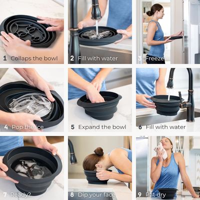 Cuve à glace pliable en silicone économe en espace - Thérapie à froid / chaud polyvalente pour le visage et les soins de beauté Parfait pour le massage facial par glace et le démaquillage