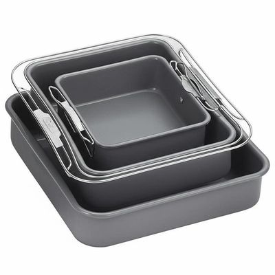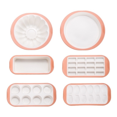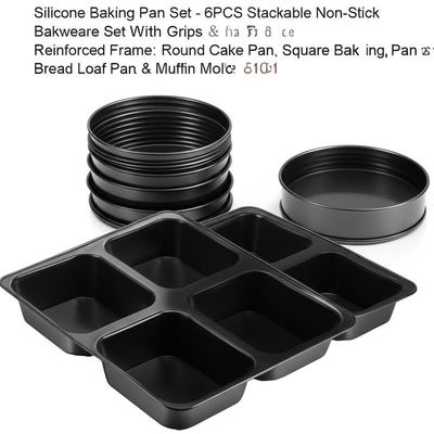 Notre ensemble de cuisson en silicone de qualité professionnelle comprend une casserole ronde, une casserole carrée, une casserole à pain,et moules de muffins - tous équipés de poignées et de cadres renforcés en métal pour une durabilité et une manipulation faciles.