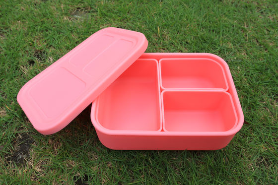 The silicone lunch box is collapsible for easy storage in bags or drawers.
